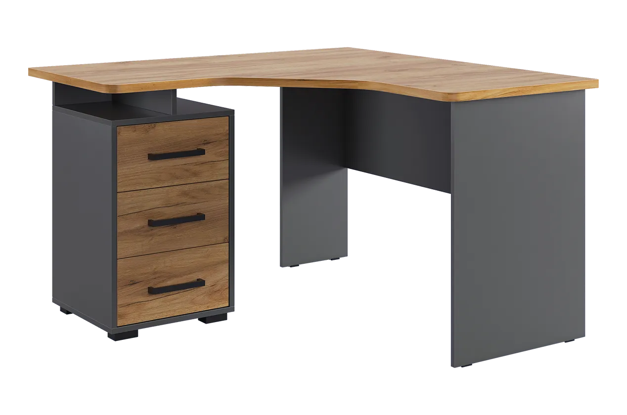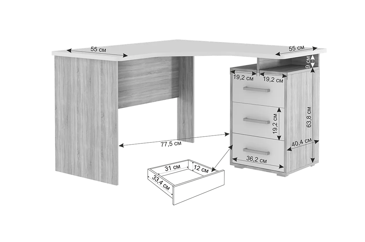 Угловой компьютерный стол «Лайт-2» может быть дополнен функциональной надстройкой или стеллажом той же серии. Главными особенностями данного стола являются радиусные элементы и утолщенная столешница – 22 мм, а также возможность собрать тумбу в одном из двух предусмотренных положений – прямом или диагональном. Сочетание удобства, лаконичности и простоты – идеальное решение для Вашего рабочего места.Характеристики: