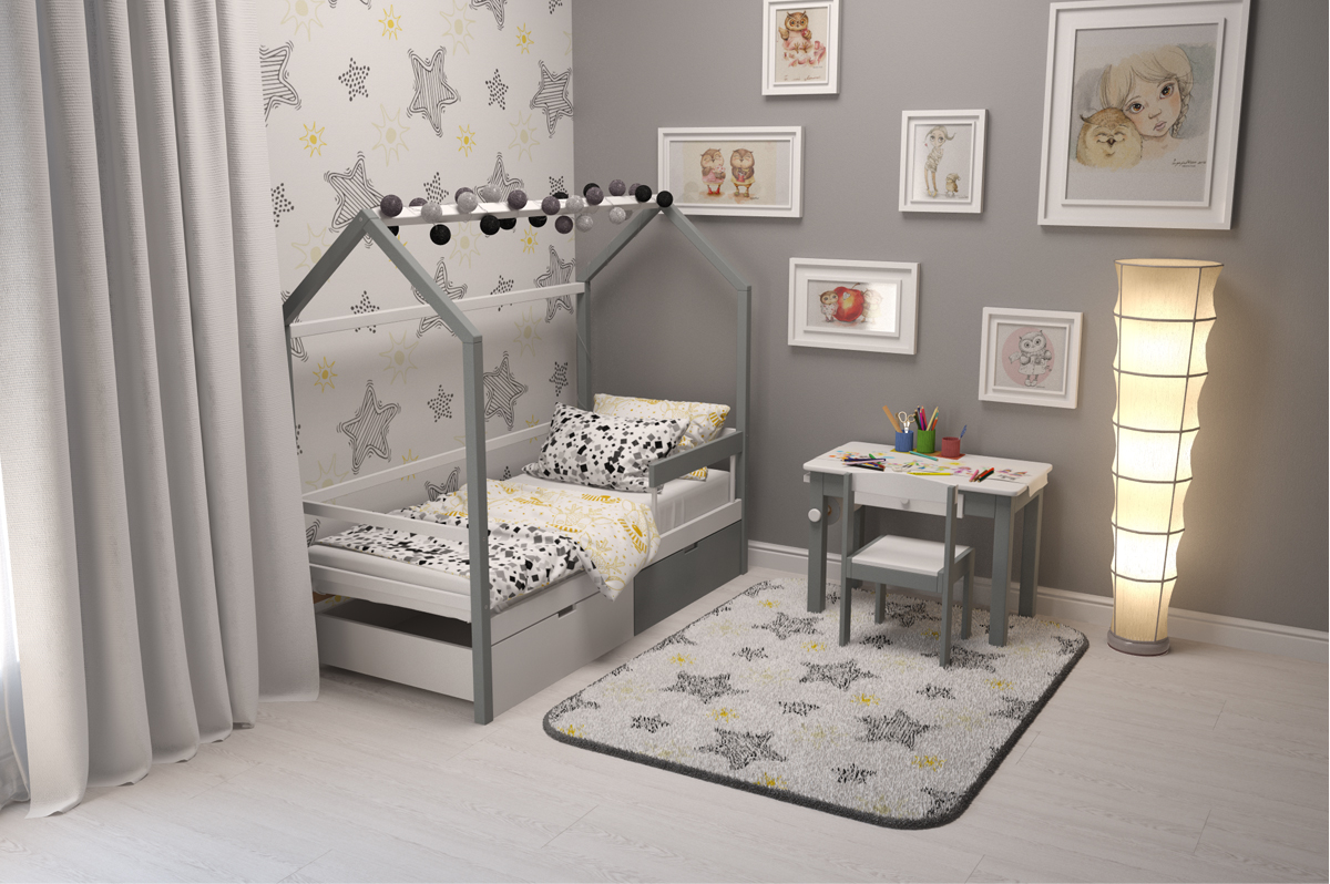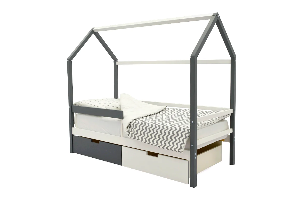Детская кровать-домик Бельмарко “Svogen графит-белый” станет любимым местом для сна и игр мальчика или девочки от 2 до 10-12 лет.