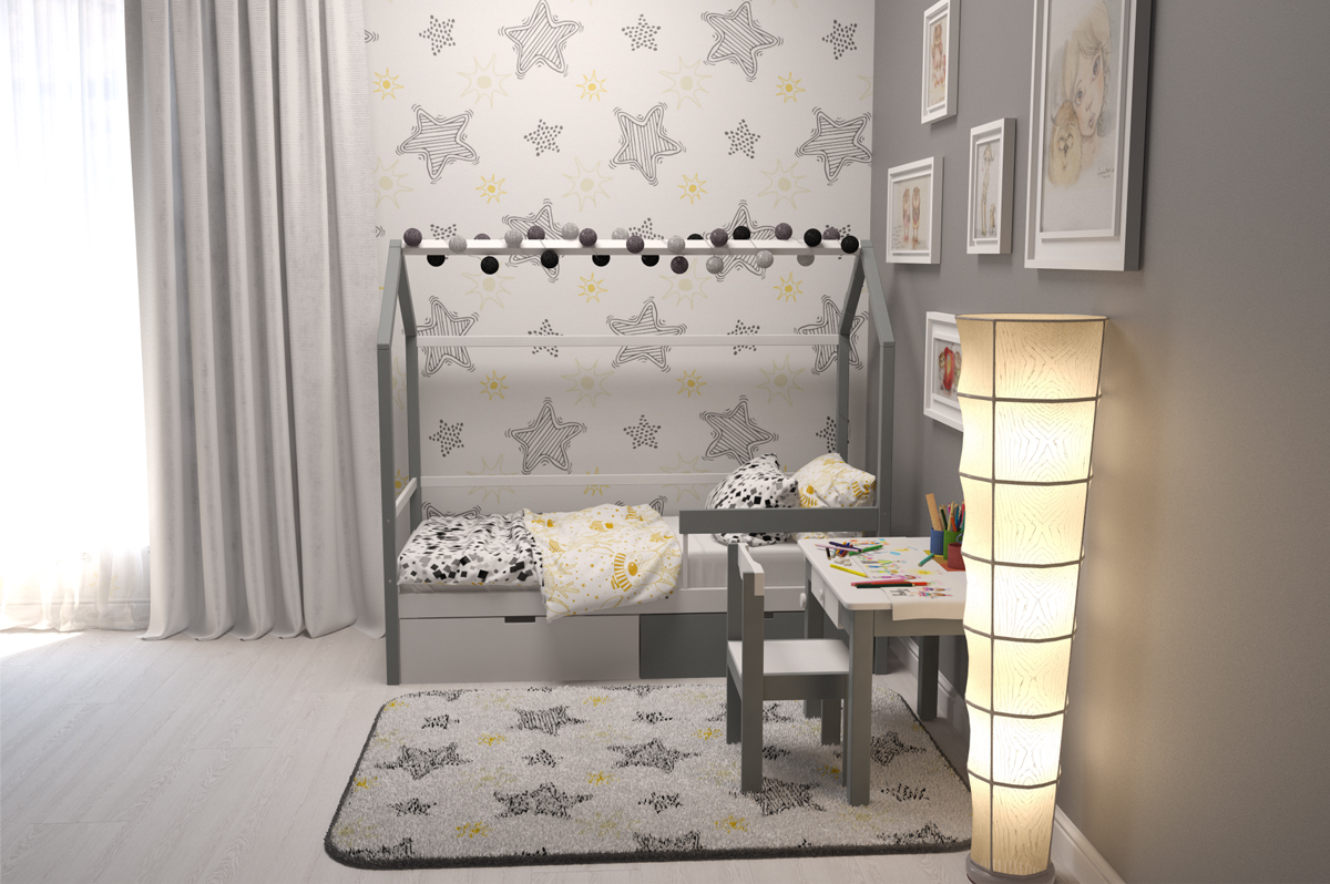 Кровать-домик легко превращается в целый замок для игр с помощью разноцветных тематических игровых накидок. Текстильная крыша на домике создаст ребенку уют и защищенное пространство.
