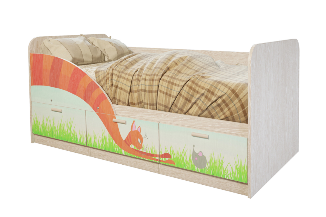 Жизнерадостные расцветки кровати "Минима Сказка" с фотопечатью развлекут юного хозяина комнаты, а ящики помогут хранить постельное белье.
