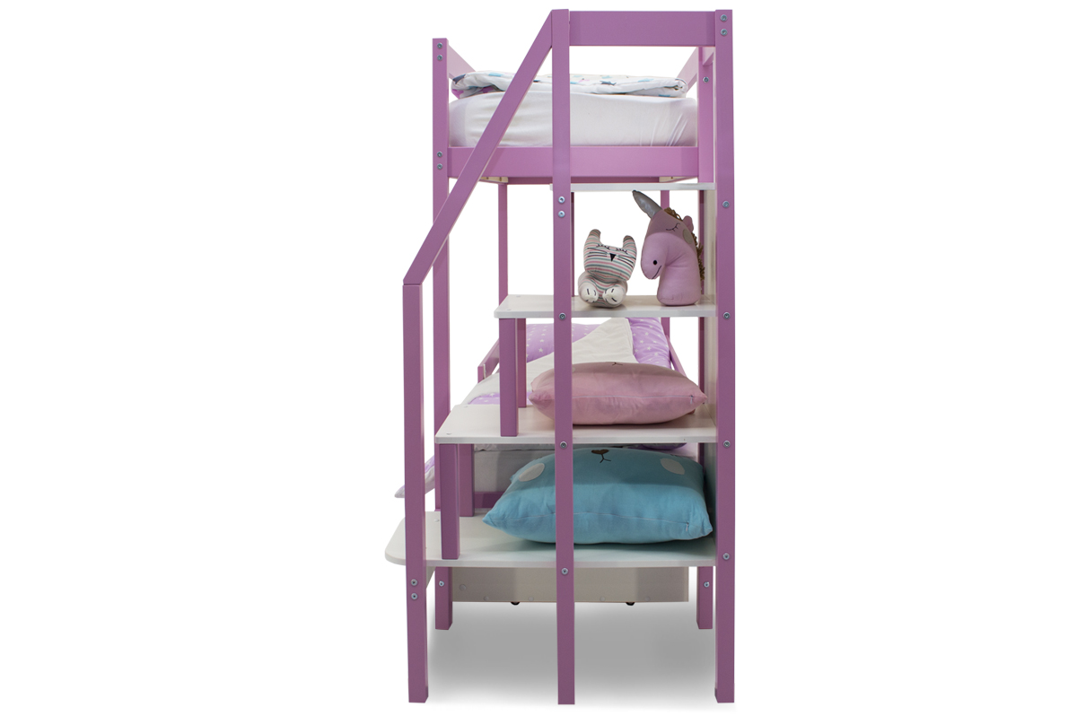 Благодаря своей конструкции, при которой оптимальна высота между ярусами и ширина спальных мест, кровать комфортна и удобна для сна и игр. Лестница и ящики под кроватью – это отличные места для хранения любых вещей.