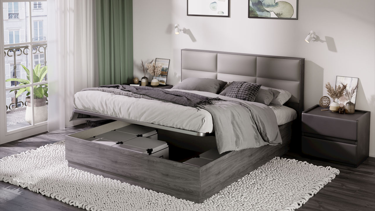 Двуспальная кровать с ортопедическим основанием из коллекции "Либерти" оснащена подъемным механизмом, который позволяет использовать простраство под спальным местом для хранения вещей. Мягкое изголовье выполнено из велюра цвета "Грей".