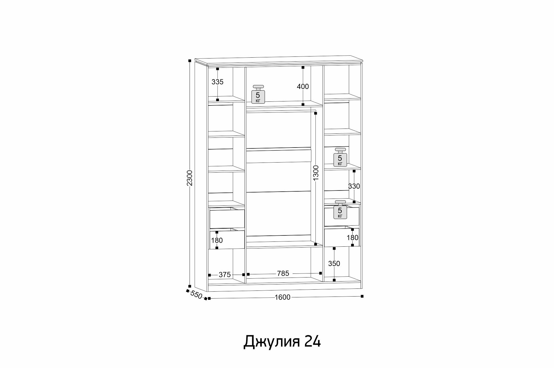 Ширина: 1600 мм | Глубина: 550 мм | Высота: 2300 мм
