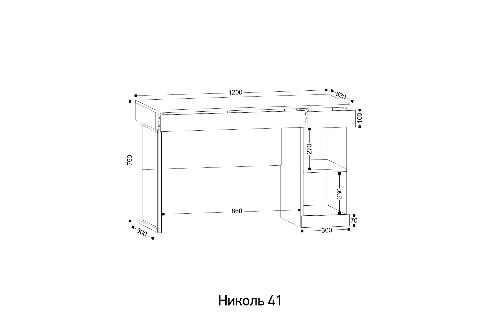 Ширина: 1200 мм | Глубина: 520 мм | Высота: 750 мм