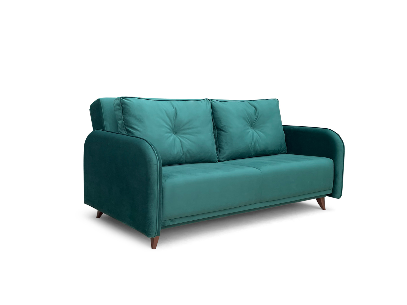 Диван в духе неоклассицизма, с различными вариантами подлокотников, отделки строчек и пуговиц, а также высокими ножками.