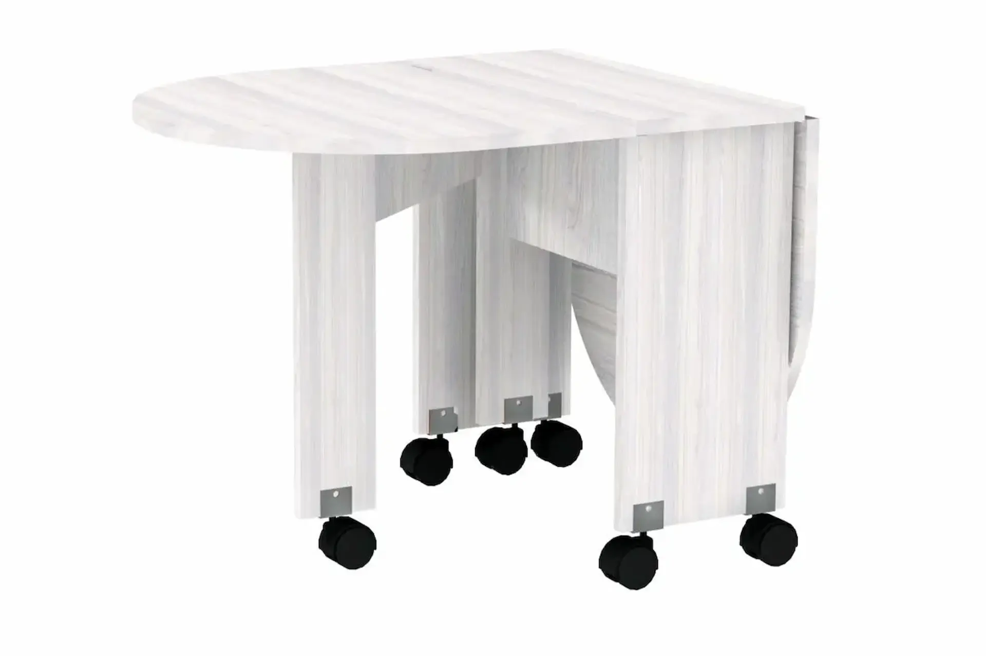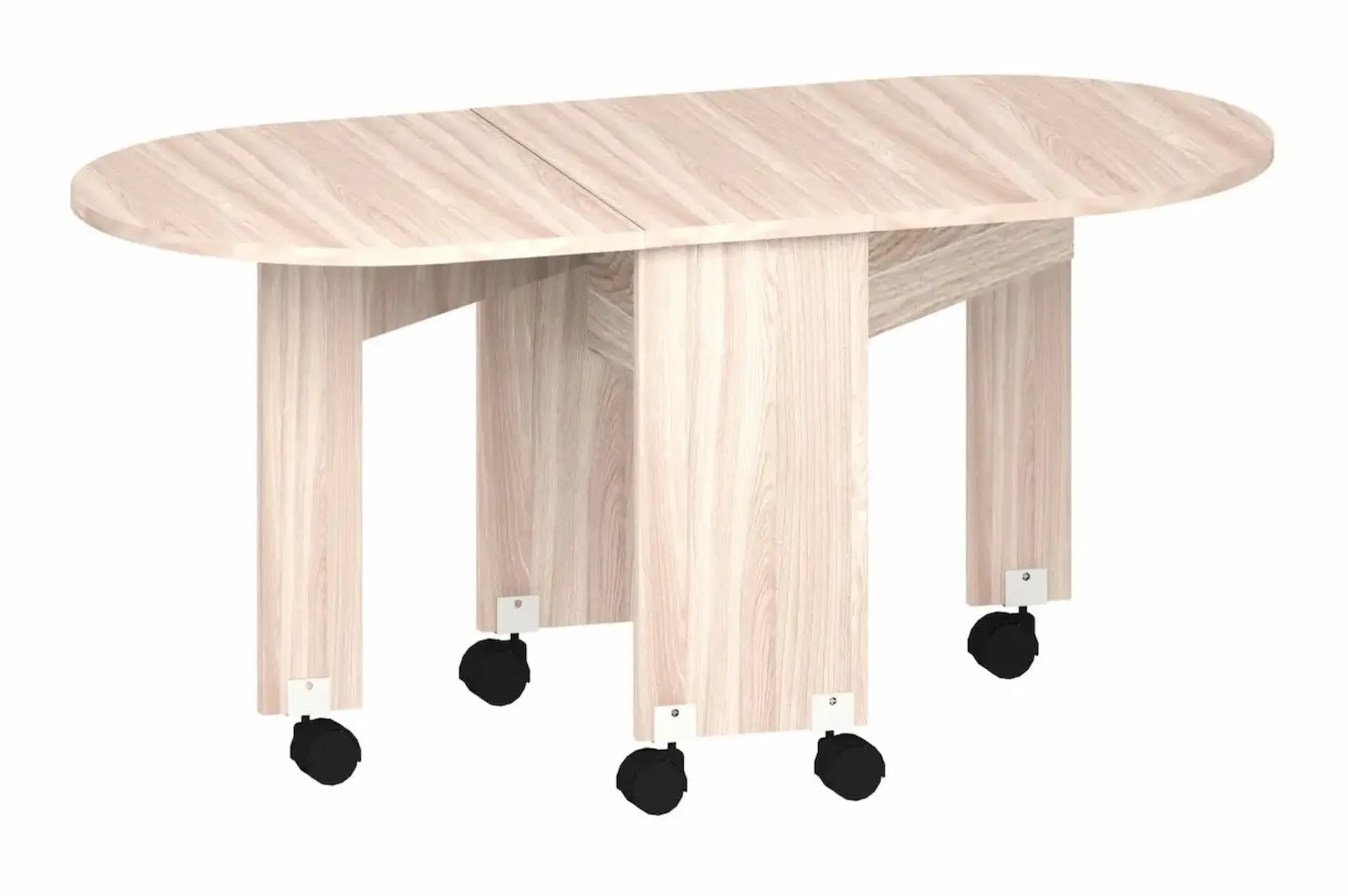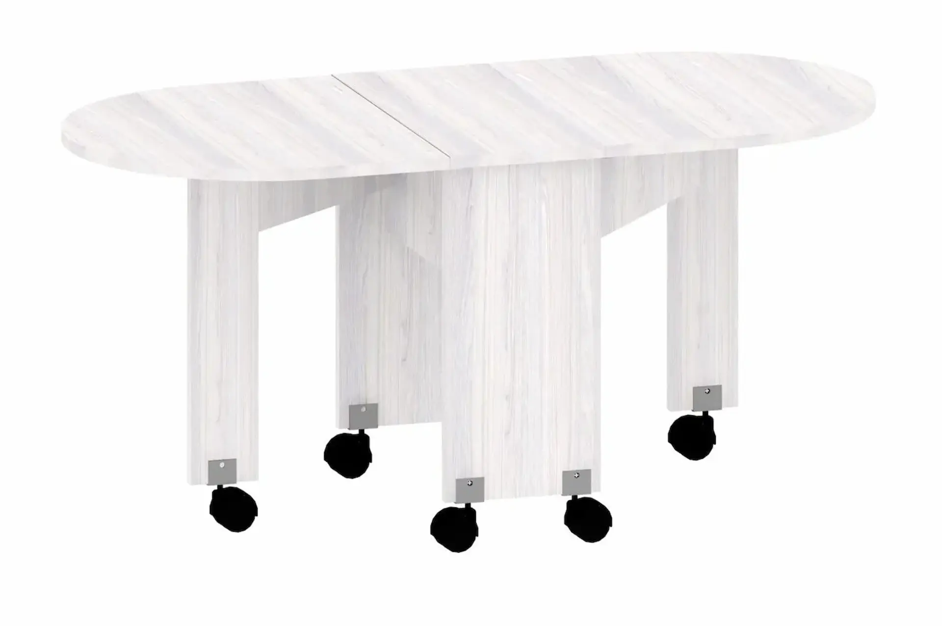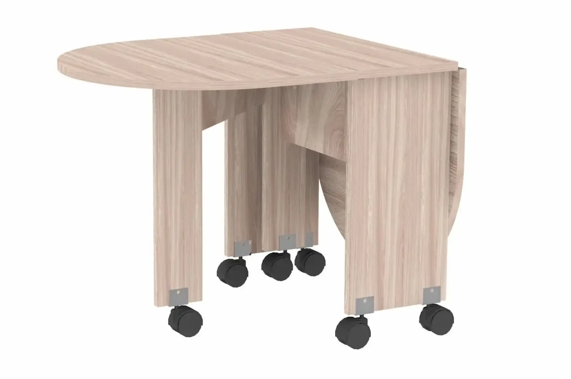 У нас есть великолепный стол-книжка, который неизменно пользуется популярностью. Для удобного перемещения по комнате стол оснащен колесными опорами.