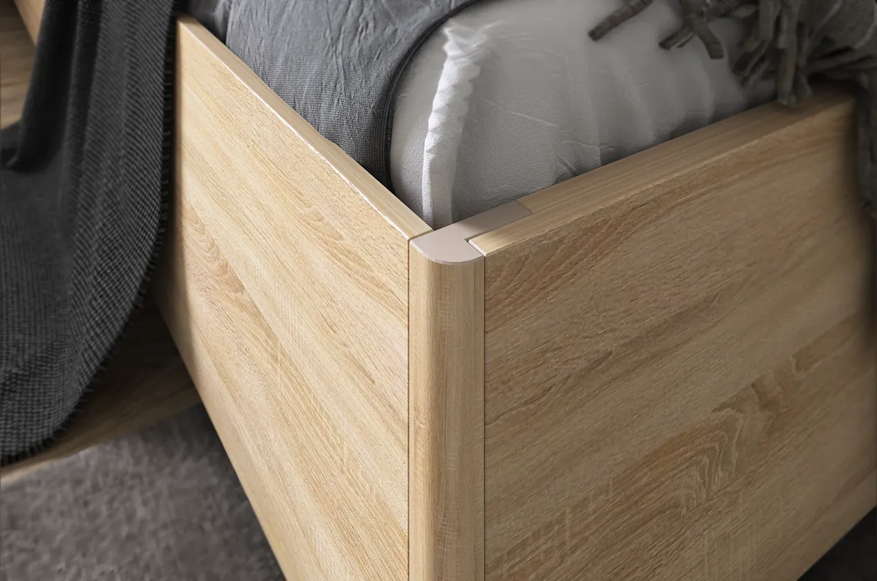 Ключевые особенности дизайна модульной спальни Зара — это сочетание современности и уюта. Мягкое изголовье из экокожи создает атмосферу релакса, а закругленные углы обеспечивают безопасность при использовании кровати.